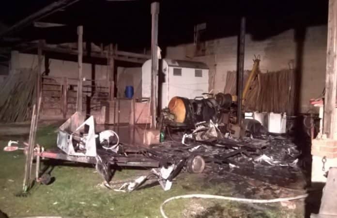 Erste Ermittlungen der Polizei Schweich zufolge dürfte der Brand von einem dort untergestelltem Wohnwagen ausgegangen sein. Dabei wurden mehrere landwirtschaftliche Geräte, Wohnwagen und das Dach des Gebäude beschädigt.