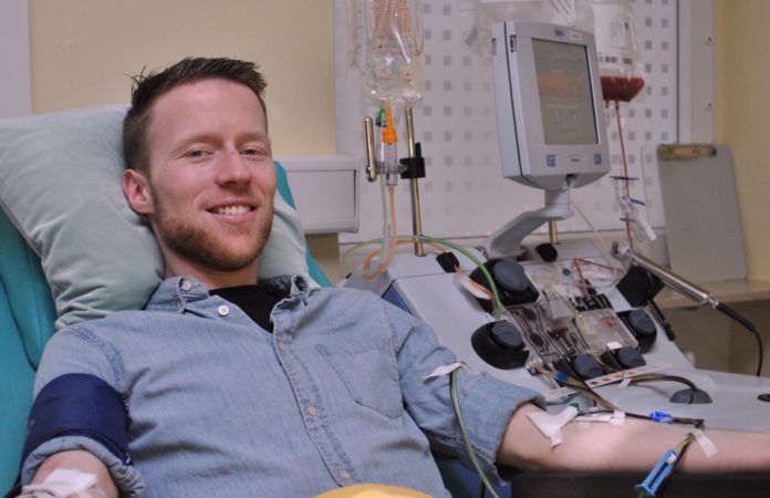 Es ist kurz vor Ostern in der Entnahmestation der Stefan-Morsch-Stiftung in Birkenfeld: Christian Ruffing liegt auf einer bequemen Liege, neben ihm summt leise die Apherese-Maschine – eine Zentrifuge, die seine Stammzellen aus dem Blut herausfiltert. In den vergangenen Tagen hat er sich – streng nach ärztlicher Anweisung – einen körpereigenen Botenstoff gespritzt, damit die Zellen aus dem Knochemark ins Blut übergehen und dort „abgesammelt“ werden können. Ruffing ist 27 Jahre alt, in Sötern (Kreis St. Wendel) aufgewachsen und derzeit Referendar am Peter-Wust-Gymnasium in Wittlich: „Ich bin kein Freund von Spritzen, aber ich habe das mit dem Wissen gemacht, dass es einen Menschen gibt, der darauf angewiesen ist, dass er meine Stammzellen bekommt.“