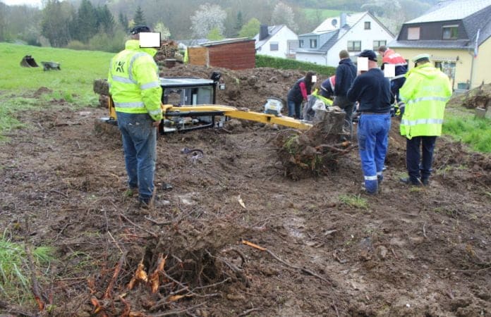 AACH. Am Samstag, 23.04.16, gegen 9.40 Uhr, kam es in Aach zu einem Unfall mit einem Minibagger. Bei Entwässerungsarbeiten auf einem Privatgrundstück mit leichter Hanglage, kippte der Minibagger samt Fahrer, beim Beladen einer Wurzel zur Seite.