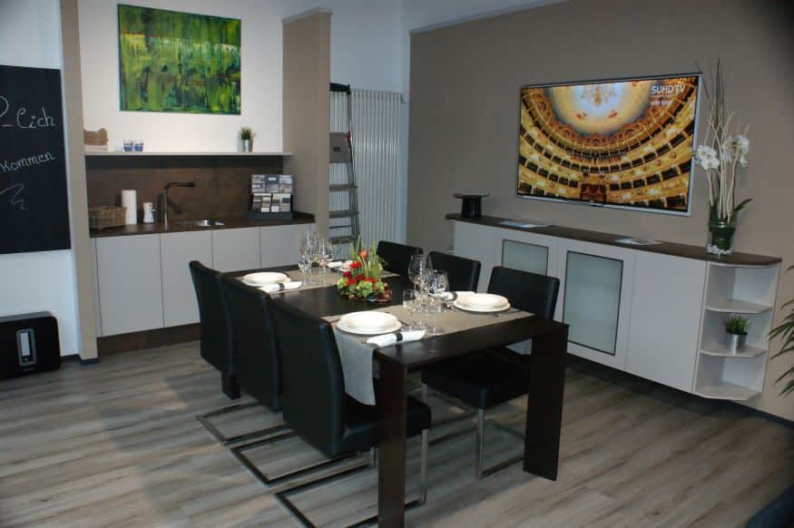 Das Küchen heute mehr als nur Orte zum Kochen sind, wird im neuen Küchenstudio vorgeführt. Per Handy sind Licht, Musik und viele andere Dinge steuerbar.