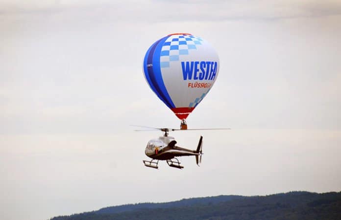 Den Aufmarsch ergänzten auch die aktuell bei der Ralley-WM in Trier eingesetzten Hubschrauber, die neugierig und vielleicht auch ein wenig neidisch auf die imposanten Ballone blickten.  Ein sicherlich einmaliges Treffen: Motor-Ralley meets BallonFiesta in Trier!