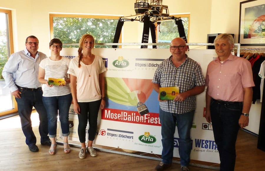 Außerdem hatten die Veranstalter eine Verlosung vorbereitet, bei der es unglaubliche Preise zu gewinnen gab. Gegen ein kleines Entgelt konnten die Lose für den guten Zweck erworben werden mit Aussicht auf den Gewinn von Ballonfahrten, einer Reise nach Paris, einem Rundflug, einem Tandemsprung und Eintrittskarten für den Eifelpark in Gondorf. (Die Gewinner sind unter www.moselballonfiesta.de veröffentlicht).
