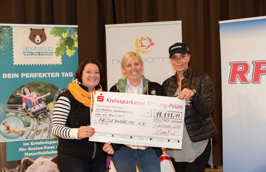 Auch die Spendensumme, die für das Projekt „Brückenpflege“ des Vereins Nestwärme zusammenkam, war mehr als erfreulich. Der Eifelpark und diverse Sponsoren haben die sensationelle Summe von 11.111 Euro an Nestwärme spenden können.