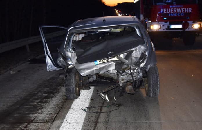 Dieser fuhr dem Toyota-Fahrer mit hoher Geschwindigkeit ins linke Heck. Aufgrund des Aufpralls drehte sich der Mercedes mehrfach und stieß dreimal gegen die rechte Seitenschutzplanke.