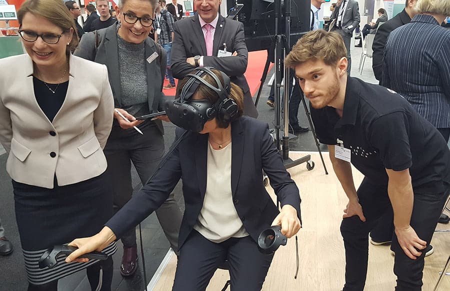 TRIER / HANNOVER. Gleich mit zwei herausragenden Exponaten ist die Hochschule Trier auf der diesjährigen CeBIT in Hannover vertreten. Besonderes Interesse der teilweise sehr prominenten Besucher galt dem Thema „Station“. Auf dem Science Square, der Speakers‘ Corner der angewandten Forschung auf der CeBIT, präsentiert der Fachbereich Intermedia Design der Hochschule Trier sein Projekt „STATION – an ISS Exploration“.