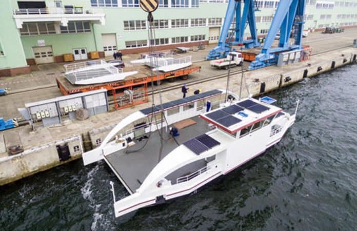 OBERBILLIG/STRALSUND. Auf dem Wasser mit der Kraft der Sonne: Nach rund sechs Monaten Bauzeit ist am Freitag in Stralsund eine neuartige vollelektrische Solarfähre zu Wasser gelassen worden.