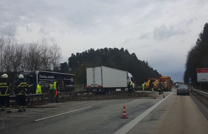 «Im Anschluss streifte der Lkw noch über eine längere Strecke an der Mittelschutzplanke entlang, verhakte sich schließlich mit dieser und kam zum Stehen», hieß es weiterhin von der Polizei.