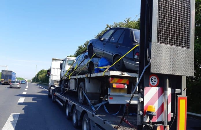 Auf der Ladefläche des Anhängers befand sich ein Lkw, der auf seiner Ladefläche wiederum zwei Pkws transportierte. Den Fahrern wurde die Weiterfahrt untersagt bis die Mängel behoben wurden respektive bis sie über die nötigen Genehmigungen verfügten.
