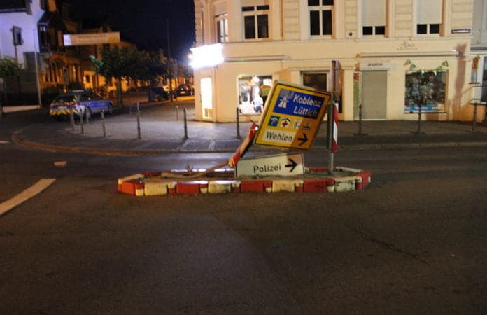 BERNKASTEL-KUES. Wie die Polizei mitteilt, kam es am gestrigen Dienstagabend, 10. Juni, gegen 22.45 Uhr zu einem Verkehrsunfall im „Kueser-Kreisel“ in Bernkastel-Kues, bei welchem mehrere Verkehrsschilder erheblich beschädigt wurden.