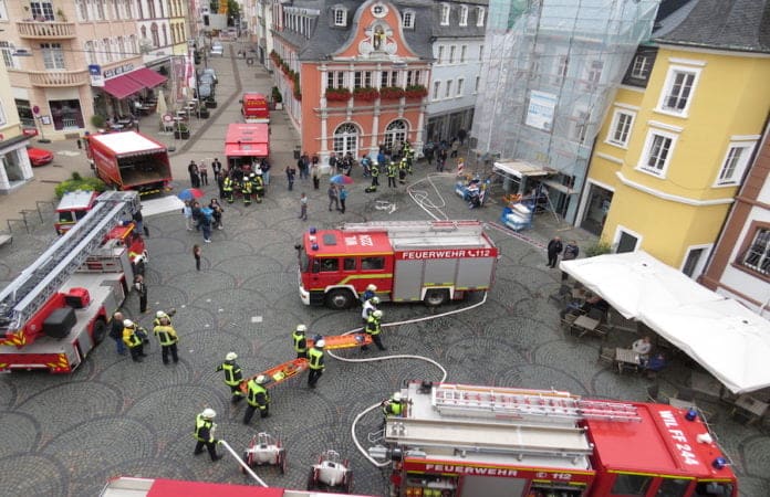WITTLICH. Ein angenommener Knall im Bereich des Marktplatzes bildet den Beginn der diesjährigen Übung aller vier Feuerwehrstandorte. Dichter Rauch dringt aus den Fenstern des ehemaligen Freckmann-Areals, mehrere Personen rufen an den Fenstern um Hilfe. Beim Eintreffen der ersten Einsatzkräfte erfahren sie, das es im Keller zu einer Gasexplosion gekommen sein soll, neben den Personen am Fenster werden auch noch welche im Gebäude vermisst.