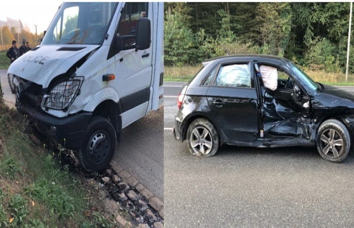 Nach Angaben der Polizei Luxemburg, befuhr ein Autofahrer die N2 vom Kreisverkehr Robert Schaffner in Richtung Sandweiler. Ein Gefangenentransporter der Polizei befuhr zur gleichen Zeit die N2 von Sandweiler in Richtung Kreisverkehr.