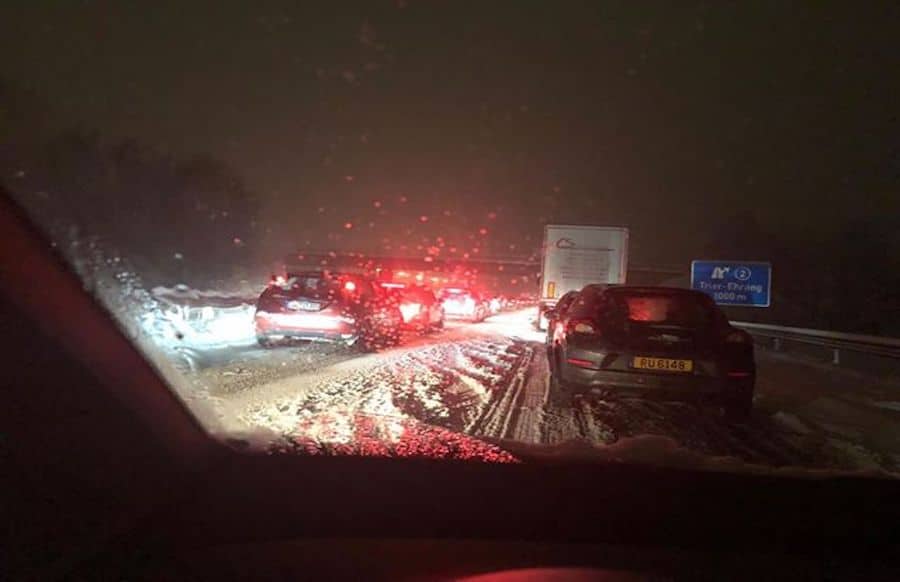 Wie uns zahlreiche Leser mitteilen kam der Verkehr in und um Trier teilweise sogar komplett zum Stehen und es ging „gar nichts mehr“. Querstehende Autos, Schritttempo und zugeschneite Autobahnen – Der Autofahrer in um Trier muss in jedem Fall geduldig sein heute Morgen!