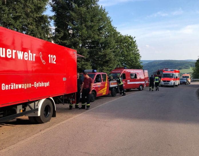 SAARBURG. Am gestrigen Dienstag, kam es gegen 17.30 Uhr in Saarburg im Bereich des Freizeitparks Warsberg zu einem Feuerwehreinsatz wegen zweier mit einer ätzenden Flüssigkeit kontaminierten Fahrzeuge und einem Wohnanhänger.
