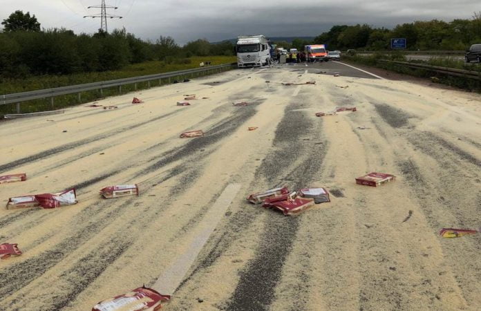 REHLINGEN. Mehrere Tonnen Reis hat ein Lastwagen nach einem Unfall auf der Autobahn 8 bei Rehlingen-Siersburg (Landkreis Saarlouis) verloren.
