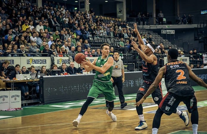 TRIER. Simon Schmitz, Jordan Geist, Kyle Dranginis, Jermaine Bucknor und Till Gloger – so lautete die Startformation, welche Headcoach Christian Held für die RÖMERSTROM Gladiators Trier gegen Chemnitz auf das Parkett schickte. Die Gäste der NINERS mussten derweil auf ihren deutschen Big Man Jan-Niklas Wimberg verzichten.