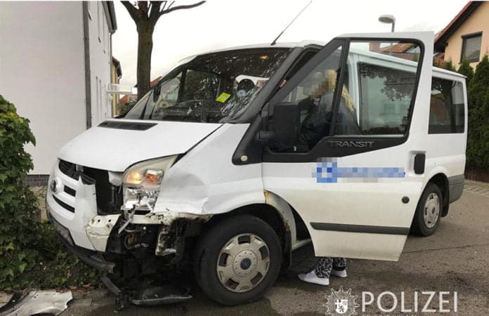 Kurz darauf missachtete dieselbe Fahrerin an der Ecke Bienengarten jedoch die Vorfahrtsregelung und nahm einem von rechts kommenden Kleinbus die Vorfahrt. Es kam zum Zusammenstoß, wodurch der Kleinbus teilweise in einen angrenzenden Vorgarten geschoben wurde. Ein Insasse wurde dabei leicht verletzt.