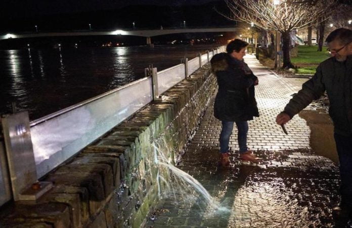 Die Mosel war bereits in der Nacht zum Dienstag vielerorts über die Ufer getreten und hatte Straßen und Keller überflutet. In etlichen Orten wurden mobile Hochwassermauern aufgebaut. Bei Koblenz, wo die Mosel in den Rhein mündet, wird das Hochwasser voraussichtlich noch bis in die Nacht auf Donnerstag steigen. Dann könnte hier nach Angaben des Hochwassermeldezentrums ein Pegelstand von um die sieben Meter erreicht werden.