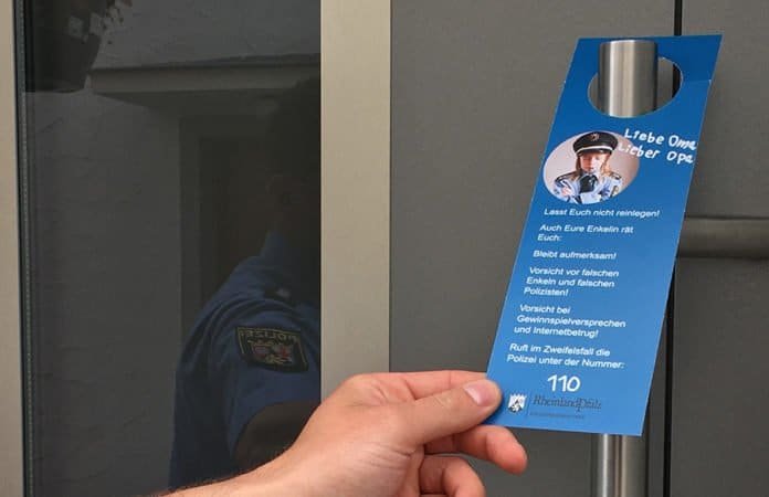 „Mit unseren Plakaten und Türanhängern möchten wir besonders ältere Menschen für die verschiedenen Betrugsmaschen sensibilisieren und sie so vor möglichen Betrügern schützen“, sagen Sarah Wallerius und Tara Lindow der Zentralen Prävention des Polizeipräsidiums Trier. Ein Plakat sowie ein Türanhänger mit präventiven Ratschlägen zum Schutz vor Betrügereien wie beispielsweise falsche Polizeibeamte, falsche Enkel, Gewinnversprechen und Internetbetrügereien wurden erstellt. „Für die Kampagne ist bewusst ein Kind gewählt worden, das seine Großeltern durch klare und direkte Ankündigungen warnt“, so Sarah Wallerius.