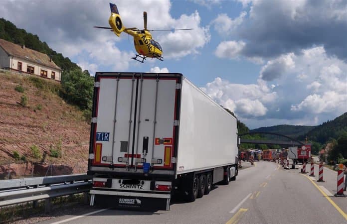 Die Bundesstraße wurde für die Bergungsarbeiten für mehrere Stunden voll gesperrt. Laut Polizei war auch ein Rettungshubschrauber im Einsatz. Details zur Unfallursache standen am Dienstagmittag noch nicht fest.