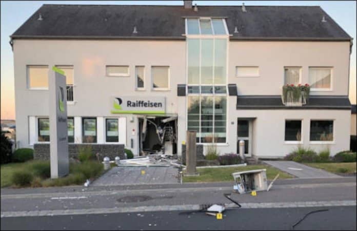 Wie die luxemburgische Polizei mitteilt, wurden durch die Wucht der heftigen Explosion der Automat aus der Verankerung gerissen und Trümmerteile mehrere Meter weit vom Tatort weggeschleudert.