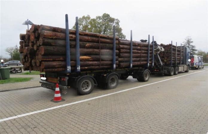 Dem noch nicht genug. Zudem wurde festgestellt, dass der Holztransport, bestehend aus Lkw und Anhänger, außerhalb der gesetzlich erlaubten Maße von 18,75m lag. Die Weiterfahrt des Holztransportes wurde umgehend wegen der Überladung und der Überlänge untersagt. Ein Teil der geladenen Holzstämme musste der Fahrer an geeigneter Örtlichkeit auf einen anderen Sattelzug der betreffenden Firma umladen.