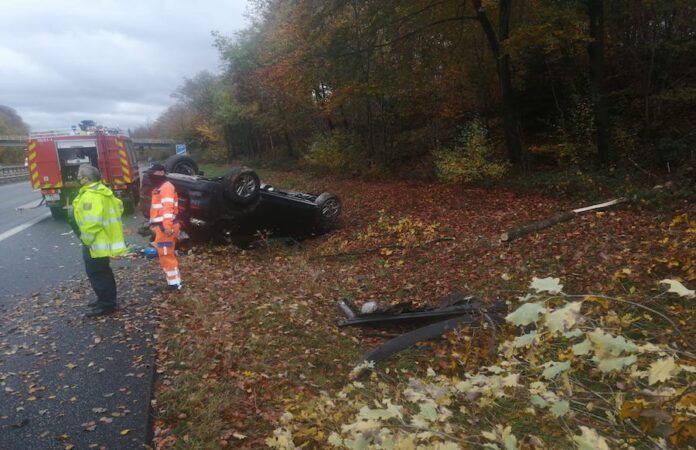 Dabei kam der Fahrer eines SUV’s, aus bislang ungeklärter Ursache, nach rechts von der Fahrbahn ab, prallte in der angrenzenden Böschung gegen einen Baum und überschlug sich mehrfach, bevor der Wagen schließlich neben der Straße liegen blieb.