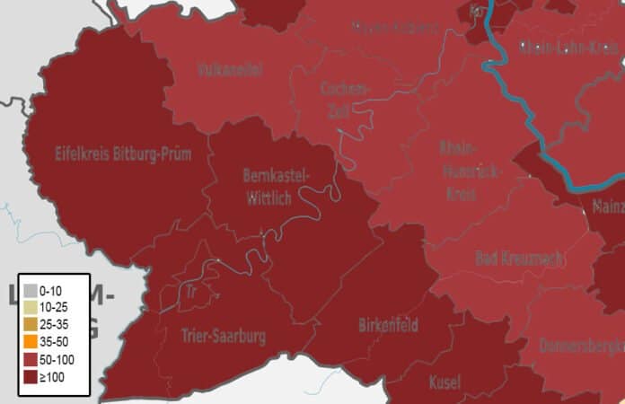 Somit liegt der Landkreis Cochem-Zell bei einem 7-Tage-Inzidenzwert von 96,13.