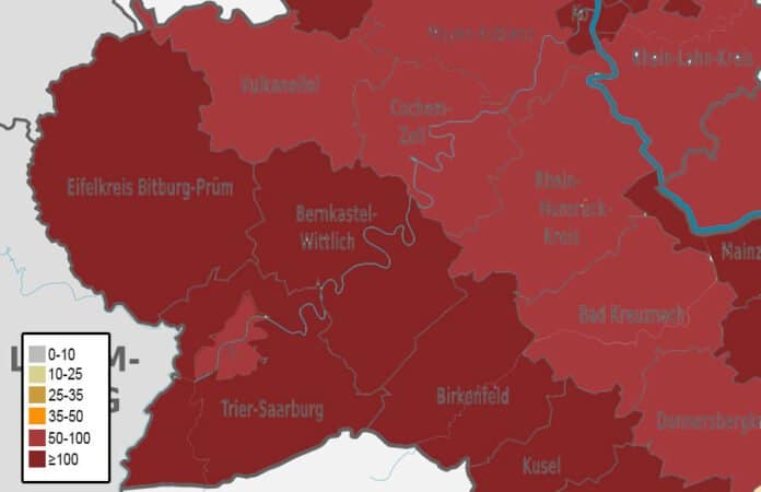 Aktuell (Stand:15 Uhr): „Corona-Infizierte“ Landkreis Trier-Saarburg: 244 ; 7-Tage-Inzidenz = 115,8 (Warnstufe ROT)