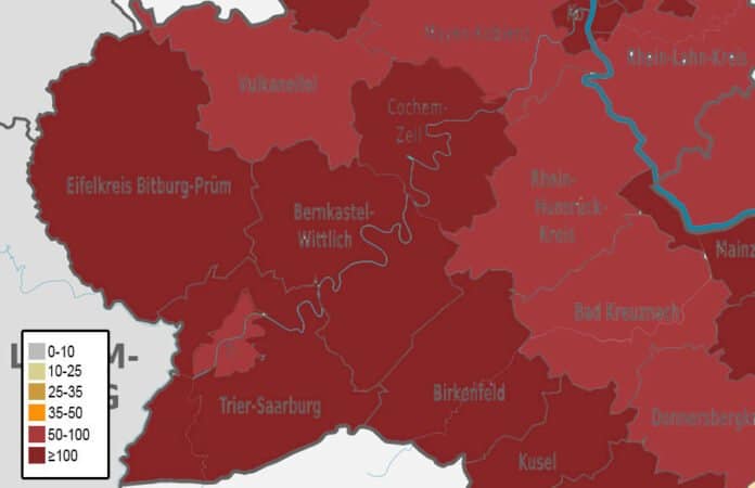 Die 7-Tage-Inzidenz liegt in der Stadt Trier nun bei 95,0 und im Landkreis bei 107,8.
