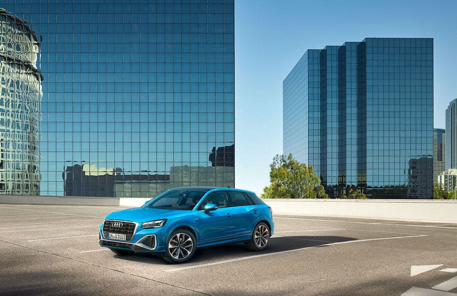 Die Audi-Designer haben das Motiv des Polygons, das bereits die Front und die Schulterlinie prägte, jetzt auch auf das Heck übertragen. Es gibt ihn jetzt in fünf neuen Farben: Der Ton Apfelgrün feiert seine Marken-Premiere, neu für den Kompakt-SUV sind Manhattangrau, Navarrablau, Pfeilgrau und Turboblau. Die Blades auf den C-Säulen sind entweder in Wagenfarbe oder in Schwarz-, Grau- und Silbertönen ausgeführt, optional gibt es sie auch in echtem Carbon.