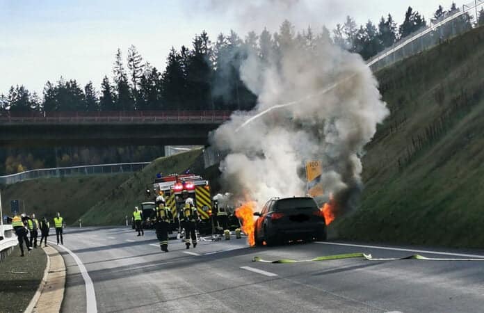 LONGKAMP. Am heutigen 21.11.2020 kam es um 11.46 Uhr auf der B 50 neu, etwa 100 Meter vor der Abfahrt Longkamp zu einem Pkw-Brand. Der 29-jährige Fahrer bemerkte während der Fahrt seinen Angaben nach plötzlich einen massiven Leistungsverlust und lenkte seinen Pkw daraufhin soweit wie möglich nach rechts an die Schutzplanke. Aus dem Motorraum drang bereits dichter Qualm.