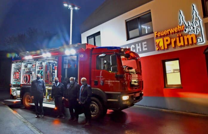 PRÜM. Wie die Verbandsgemeinde Prüm mitteilt, hat Bürgermeister Aloysius Söhngen. aufgrund der Corona-Pandemie in ganz kleinem Kreis, ein neues Hilfeleistungslöschgruppenfahrzeug (HLF 20) an die Feuerwehr Prüm übergeben.