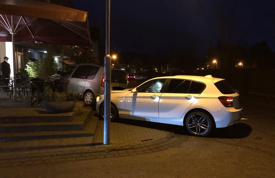 Es kam zum Zusammenstoß. Hierdurch geriet das Fahrzeug des Unfallverursachers auf die angrenzende Gästeterrasse eines Cafés. Dabei wurde etwas Inventar beschädigt. Beide Fahrzeuge waren nicht mehr fahrbereit und mussten abgeschleppt werden. Bei dem Verkehrsunfall blieb es Gott sei Dank nur bei Sachschaden.