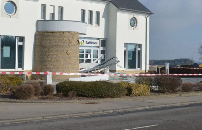 WINTGER/CLERF. Wie die Police Grand Ducale mitteilt, wurde der Polizei in der vergangen Nacht gegen 04.40 Uhr gemeldet, dass unbekannte Täter in der Haaptstrooss, N12 in Wintger (Kanton Clerf) einen Geldautomaten bei einem Bankgebäude aus der Wand gesprengt hatten.