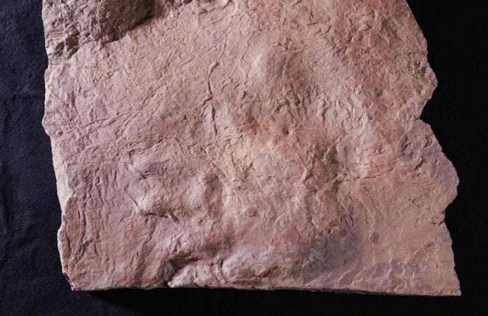 THALLICHTENBERG. Ein wanderndes Ehepaar hatte im Juli 2020 bei Eschbach eine Sandsteinplatte mit einer fossilen Kontur entdeckt – einem rund 22 Zentimeter großen Fußabdruck eines sogenannten Pareiasauriers. Die bis zu 600 Kilogramm schweren Tiere tapsten vor etwa 270 bis 252 Millionen Jahren durch die Erdgeschichte. Die dunkelrote Platte von etwa 45 Zentimetern in fast quadratischen Maßen war im Herbst 2020 einige Wochen lang in einer Sondervitrine des Urweltmuseums Geoskop in Thallichtenberg (Kreis Kusel)zu sehen, bevor Museen wegen der Corona-Pademie schließen mussten.