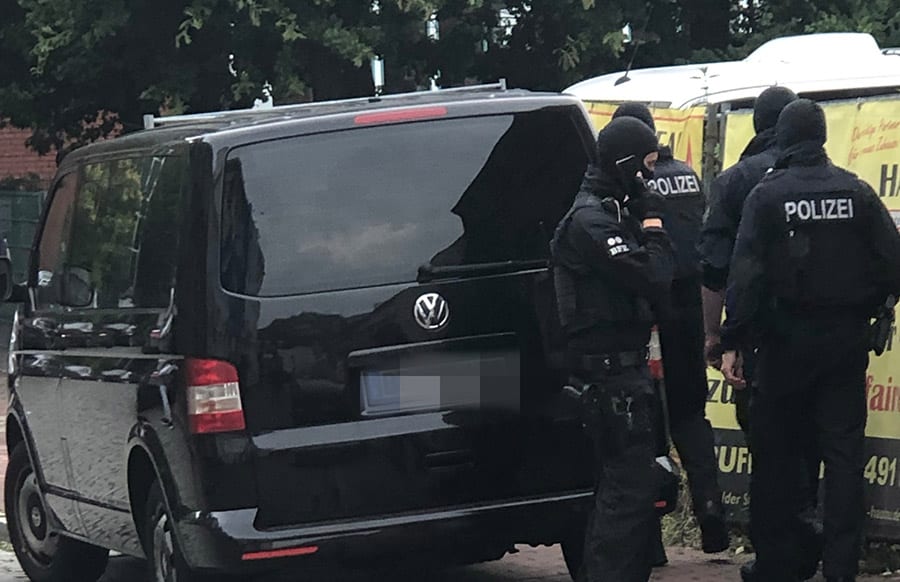 Die Bundespolizei rückte am frühen Mittwochmorgen mit insgesamt rund 260 Einsatzkräften an, darunter auch Spezialkräfte. Im ostfriesischen Leer wurden neun Wohnungen durchsucht. Zudem waren je eine Wohnung in der Gemeinde Moormerland (Kreis Leer) und im rheinland-pfälzischen Schweich (Kreis Trier-Saarburg) im Visier der Ermittler. Bei den Razzien stellten die Beamten unter anderem Datenträger sicher, die nun ausgewertet werden sollen.