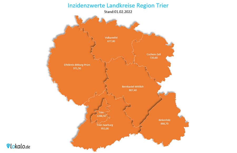 TRIER. Die aktuellen Corona-Zahlen von Dienstag, 01. Februar 2022, aus dem Landkreis Trier-Saarburg, dem Eifelkreis, dem Vulkaneifelkreis, Landkreis Bernkastel-Wittlich, dem Landkreis Cochem-Zell sowie der Stadt Trier.