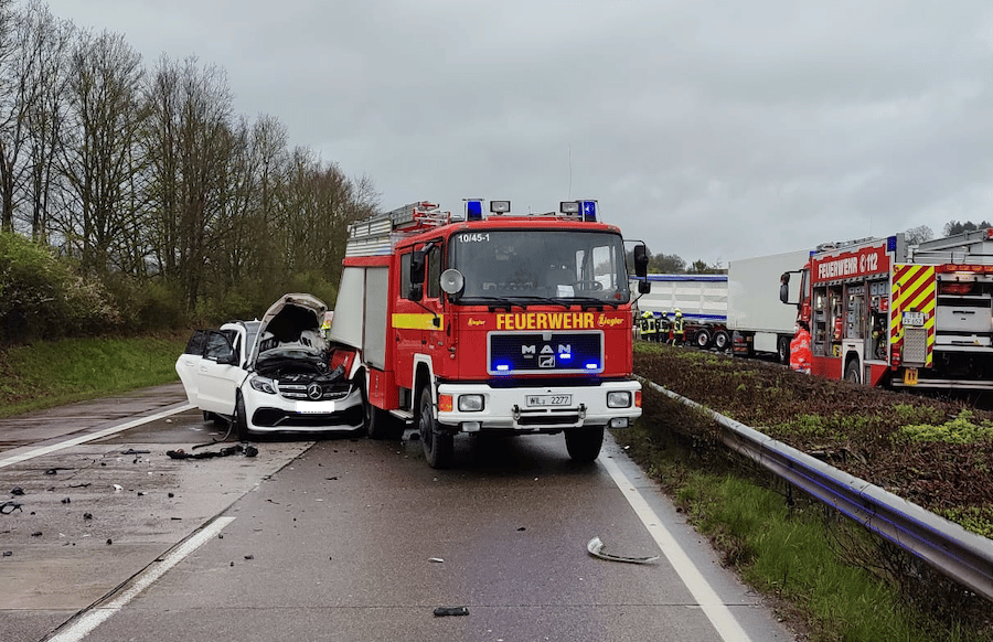 Im Folgeunfall auf der Gegenspur, die ebenfalls für längere Zeit komplett gesperrt werden musste, wurden 2 Personen leicht verletzt und es kam zu hohem Sachschaden.
