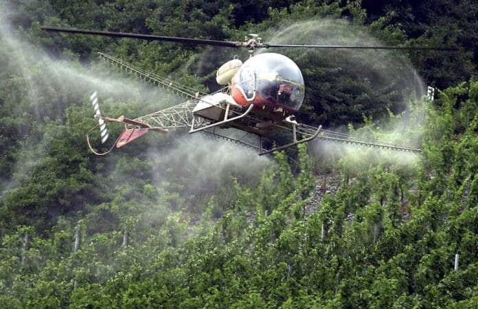 Die Spritzsaison beginnt im Mai und dauert bis August. Seit diesem Jahr sind erstmals auch Drohnen zur Ausbringung von Pflanzenschutzmitteln in Steilllagen zugelassen. Alle Spritzungen mit Luftfahrzeugen müssen von der ADD genehmigt werden.