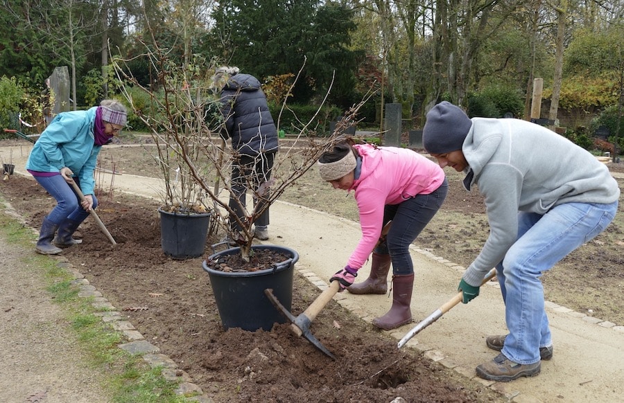 TRIER. 26.11., Samstagmorgen, 10.00 Uhr: Männer und Frauen, „bewaffnet“ mit Spaten, Hacken, Rechen und anderen Gartengeräten. Da werden Löcher ausgehoben, Wurzelballen gelockert, Büsche zurechtgelegt und eingepflanzt.