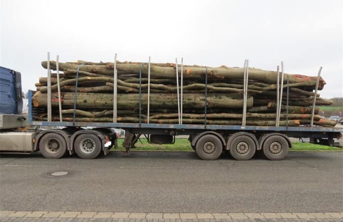 Am heutigen Morgen stoppten die Beamten auf der A-64 bei Trier einen mit Buchen beladenen Holztransport auf dem Weg von Bonsbeuren zum Sägewerk in Virton (Belgien). Bei der Kontrolle erhärtete sich schnell der Verdacht der Überladung.