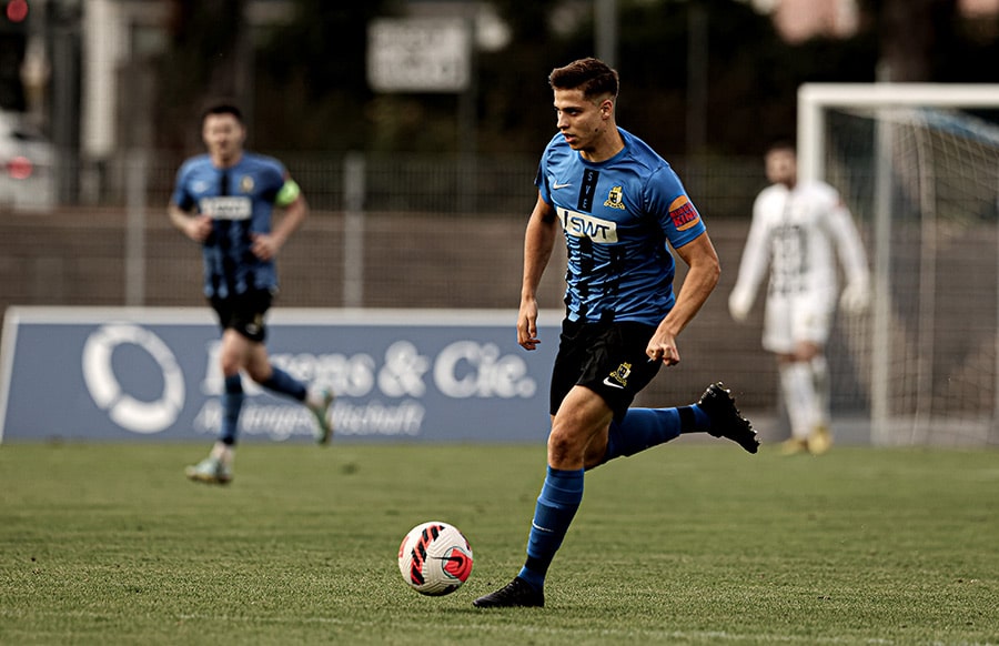 Im vergangenen Winter war der damals 21-jährige Wrusch vom FV Hunsrückhöhe Morbach zu den Blau-Schwarz-Weißen gewechselt. Nach einigen überzeugenden Kurzeinsätzen entwickelte sich „Wruschi“ bis heute zur Stammkraft, lediglich ein Bänderriss vor der Winterpause bremste den gebürtigen Wittlicher zwischenzeitlich aus.
