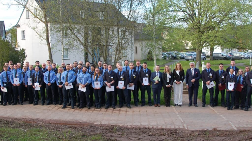 Abschließend rief Minister Mertin die Absolventinnen und Absolventen dazu auf, den Justizvollzug bei der Nachwuchsgewinnung zu unterstützen: „Die Justizvollzugsanstalten unternehmen bereits erhebliche Anstrengungen, um neue Mitarbeiterinnen und Mitarbeiter für den Justizvollzug zu gewinnen, sei es durch Bewerbertage, die Teilnahme an Berufsfachmessen oder Auftritte in den sozialen Medien. Aber auch Sie, liebe Absolventinnen und Absolventen sind ein wichtiger Baustein der Nachwuchsgewinnung. Sie sind ein Aushängeschild des Justizvollzugs und Ansprechpartner für etwaige künftige Kolleginnen und Kollegen. Bitte nutzen Sie die Gespräche mit Freunden, Verwandten und Bekannten und werben Sie für den Justizvollzug – auch im eigenen Interesse. Denn die Arbeit macht mit vielen netten und motivierten Kolleginnen und Kollegen am meisten Spaß.“