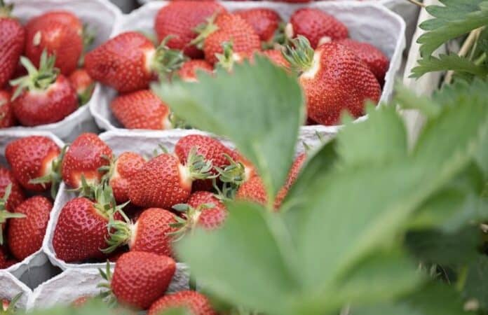Jost und Kirn bauen Erdbeeren auf etwa zwölf Hektar Fläche an. «Wir ernten durchschnittlich auf der gesamten Fläche 180 Tonnen Erdbeeren. Ein Teil der Flächen dienen der Selbstpflücke», sagte Kirn.