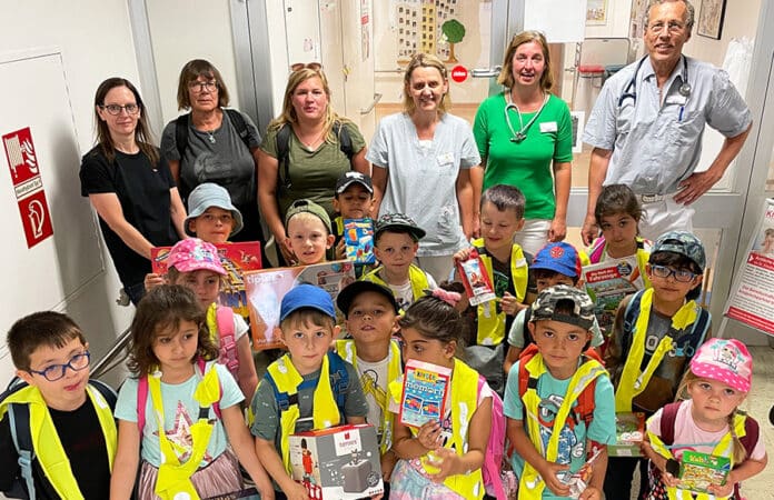 Aber damit war die Aktion noch lange nicht zu Ende. Die Schmetterlingsgruppe setzte das Geld in Dinge um, die die Kinderstation des Krankenhauses gut gebrauchen kann. So wurden in einem Geschäft Toniboxen, passende Figuren und Spiele in den Einkaufswagen gelegt.