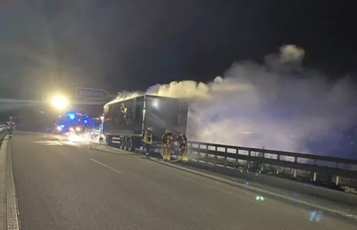 Mittlerweile ist der linke Fahrstreifen jedoch wieder befahrbar, wie die Polizei am Dienstagmorgen mitteilte. Der Fahrer hatte das Feuer an dem Lastwagen frühzeitig bemerkt und konnte sich unverletzt aus der Fahrerkabine retten. (Quelle: dpa)
