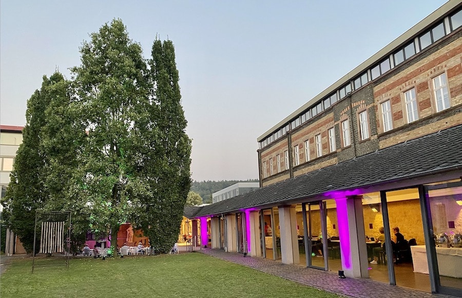 Im Museum am Dom ist der klassizistische Torbogen in warmem Orange einladend illuminiert. In der Remise des Museums bietet die Trierer Suppenbar „Zuppa“ ihre Köstlichkeiten an, während Besucher es sich an den Tischen im Innenhof bequem gemacht haben, um der PIKS Swing Company zu lauschen, die Klassiker aus Dixie, Swing, Latin und Evergreens zum Besten gibt. Rund um den kleinen Rasen-Vorplatz des Dommuseums und besonders in dem zusätzlich durch eine kleine Baumgruppe abgeschirmten, etwas abgesenkten Innenhof wähnt man sich an diesem Abend fast in Florenz oder Siena – ein bisschen Toskana-Flair an der Mosel.