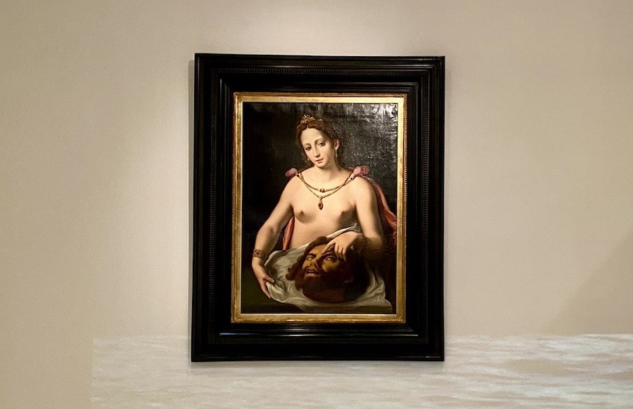 So ist die „Salome“ eines namentlich nicht bekannten Künstlers ein Werk des Frühbarock aus dem 16. Jahrhundert, fast noch renaissancehaft, wie Hoppe erläutert. Das Gemälde sei „der Schule von Fontainebleau nachempfunden“, die der Roi-chevalier Frankreichs, Franz I., als Mäzen förderte. Die Kunstbegeisterung des Königs, der den greisen Leonardo nach Frankreich holte, wo dieser die monomental-verschlungene Zaubertreppe seines Loire-Schlosses Chambord entwarf, ließ ihn Maler des Manierismus und des Frühbarock fördern. Die Salome mit nacktem Oberkörper im Dommuseum zeigt die Vorliebe der Schule von Fontainebleau für erotische Motive, führt Hoppe aus, wenngleich das Statuarische des Gemäldes noch wenig barock wirkt, sondern der Renaissance verhaftet bleibt. Gerade auf der Ambivalenz von Sinnlichkeit und Zurückhaltung in der Gestalt der Salome beruhe die spezielle Wirkung dieses Bildes auf den Betrachter.