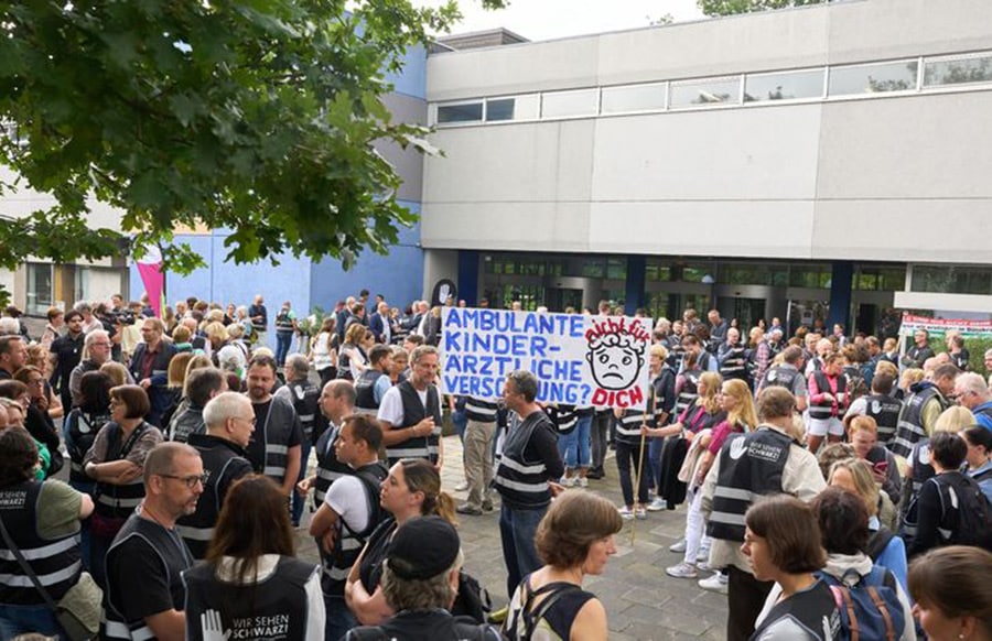 Symbolisch stellte die KV der ambulanten Versorgung eine Krankschreibung aus. Diese sei an die Adresse von Bundesgesundheitsminister Karl Lauterbach (SPD) gerichtet. Die KV RLP hatte unter dem Motto «Wir sehen schwarz» zum Protest in Lahnstein eingeladen. Dort war 1992 das Gesundheitsstrukturgesetz auf den Weg gebracht worden, gegen dessen Bestimmungen sich die Kritik richtet.