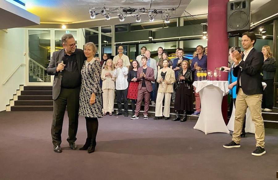 Am Ende wird es ungewöhnlich emotional, selbst für einen Premierenabend: Als Marina Litwinenko, Witwe des 2006 im Londoner Exil mit radioaktivem Polonium-210 ermordeten Ex-Geheimdienstlers und Kreml-Kritikers Alexander Litwinenko, auf die Bühne geholt wird, steigert sich der ohnedies bereits tosende Applaus im Großen Haus des Theaters Trier nochmals hörbar. Später, bei der Premierenfeier in der Lobby, dankt Intendant Manfred Langner Marina Litwinenko nochmals dafür, aus London eigens zur Premiere und deutschen Erstaufführung des Schauspiels „Extrem teures Gift“ der britischen Autorin Lucy Prebble nach Trier gereist zu sein, und erzählt, dass die Litwinenkos ihren letzten Urlaub vor der Vergiftung Alexanders in Trier verbracht haben.